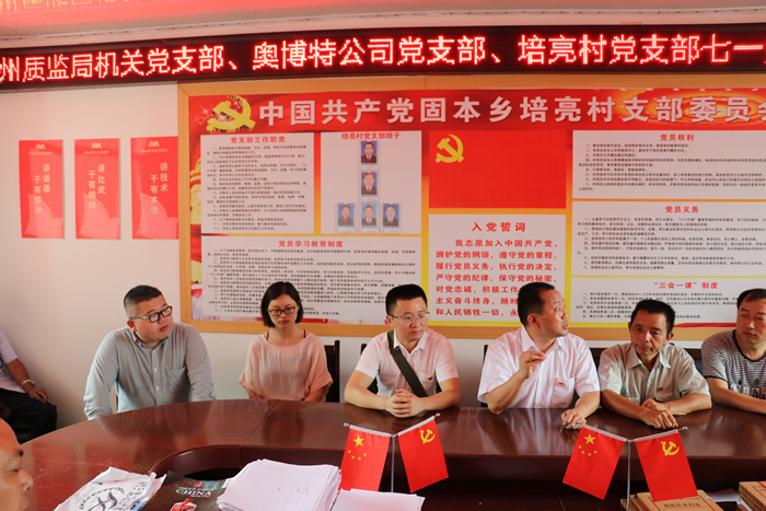州質監局機關黨支部、奧博特公司黨支部、培亮村黨支部聯合舉辦七一黨建主題活動日座談會。所有黨員積極發言,針對培亮村的經濟發展問題、農村兒童的教育問題展開了熱烈討論。